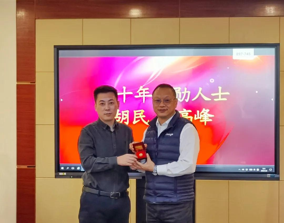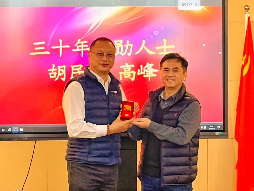 东方监理公司胡民、刘红艳、高峰、李奉森、刘建昌荣获三十年功勋人士纪念金牌。郑德斋荣获二十年功勋人士纪念银牌。